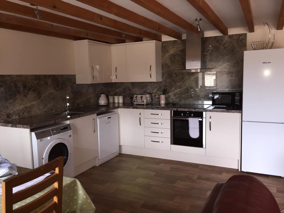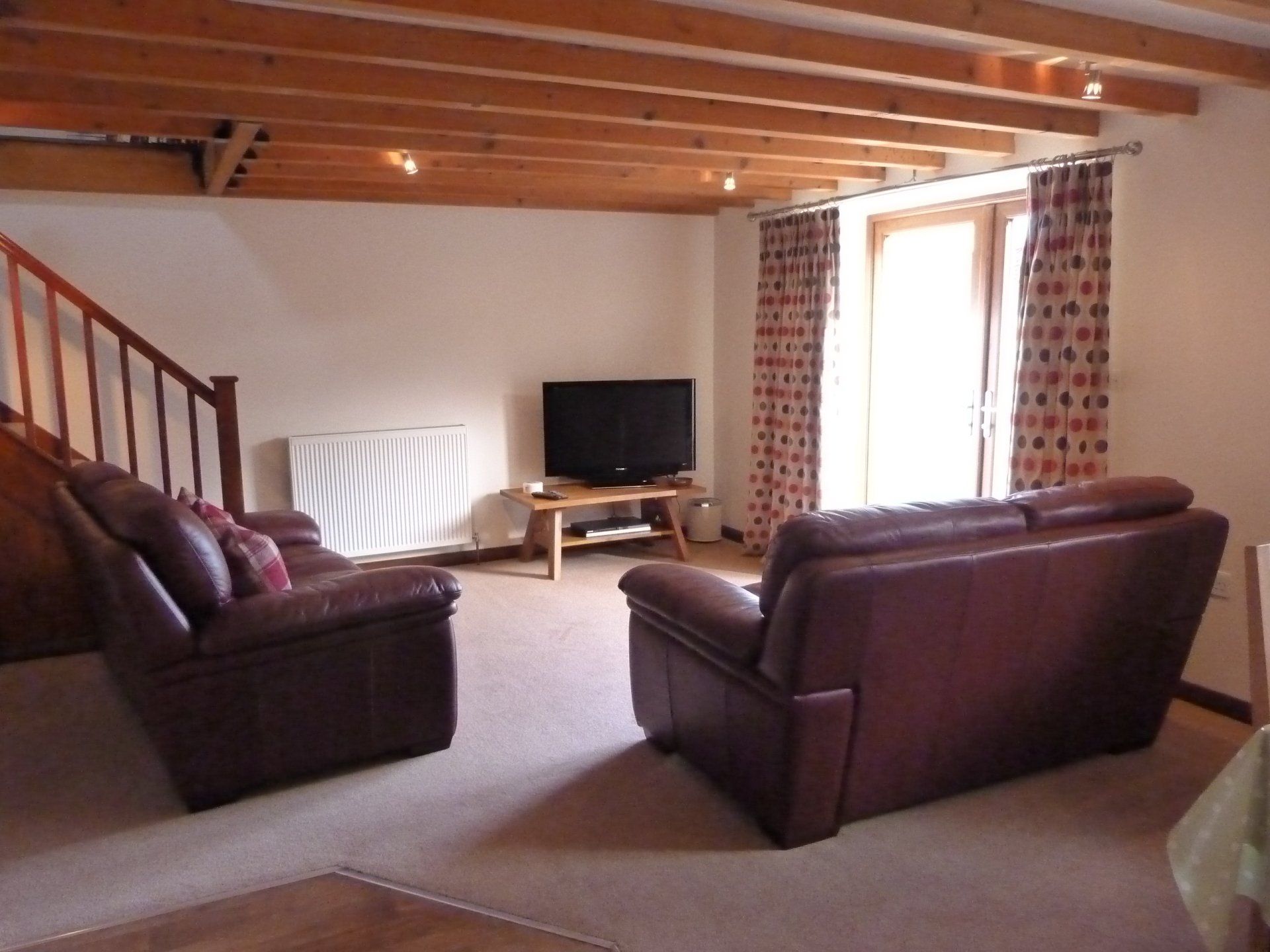 Ash Tree Cottage is two storey with reciding ceilings and beams , staircase , Open plan seating & dinning/kitchen area , comprising of 40" Flat Screen Television , DVD , Wi-Fi , Leather suite ( 2 x 2 seater settes) & pouffee . Oak Table with four chairs , coffee table .