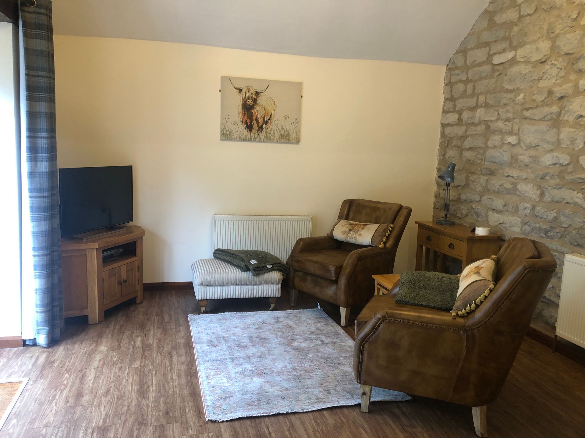 37" Flat Screen Television , DVD Player , Wi-Fi , Two easy chairs with Pouffe , Nest of coffee tables .